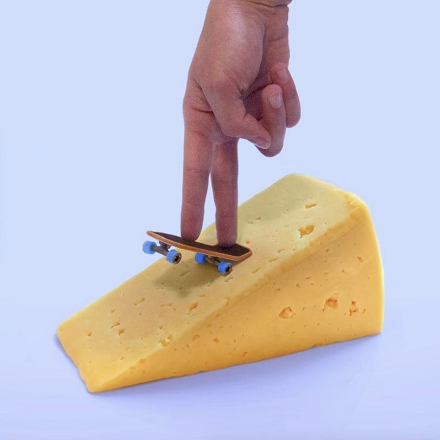 También podemos ver como un simple queso se puede convertir en una rampa de Skate, un plátano en un improvisado teléfono, o una madeja de tela en un precioso flamenco.