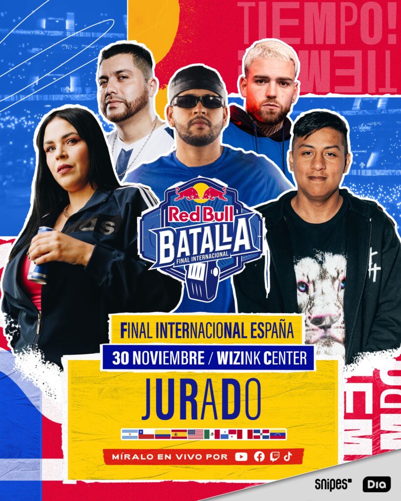 Además, la Final Internacional de Red Bull Batalla contará con un jurado muy especial, las personas encargadas de puntuar e impartir veredicto en estas batallas y quienes tendrán la responsabilidad de elegir al mejor freestyler en habla hispana del mundo.