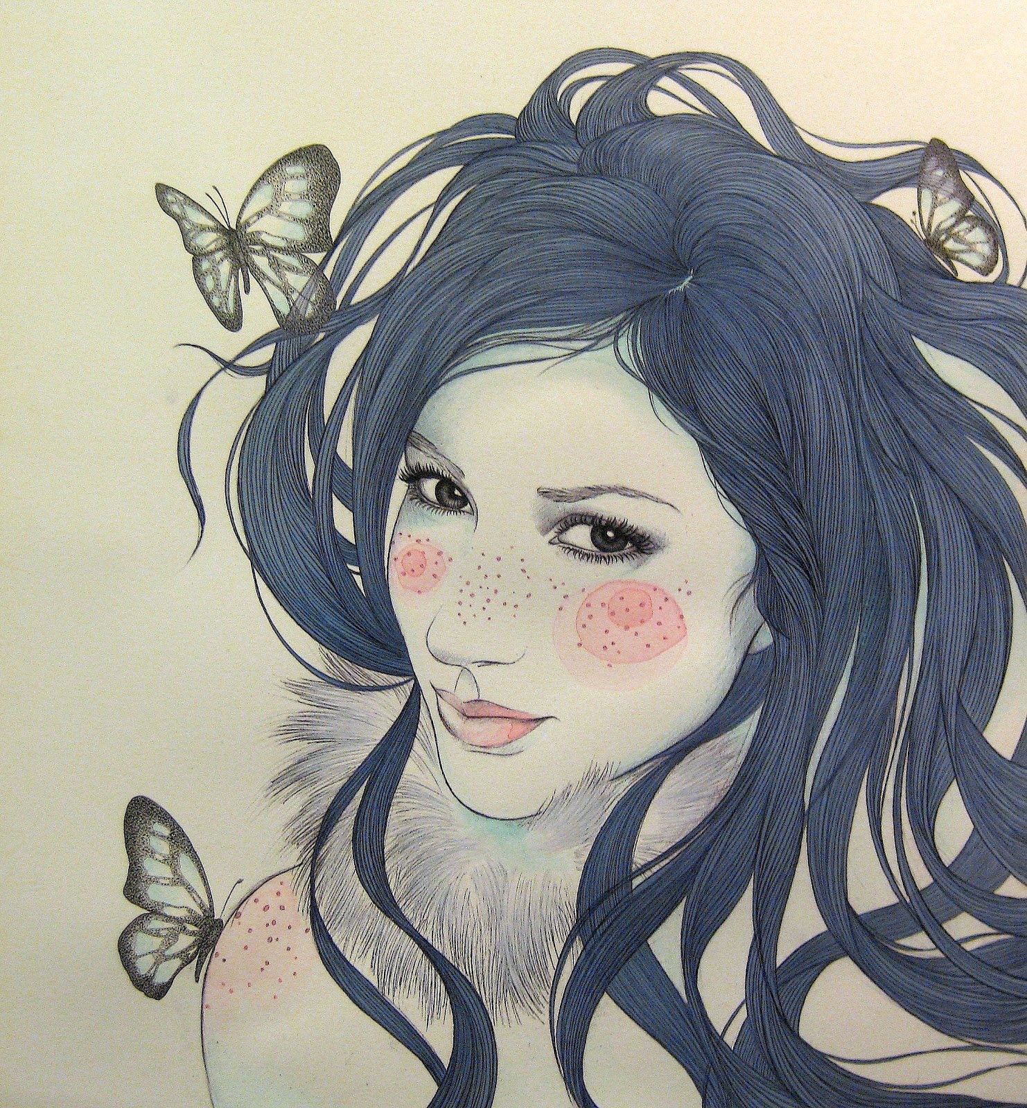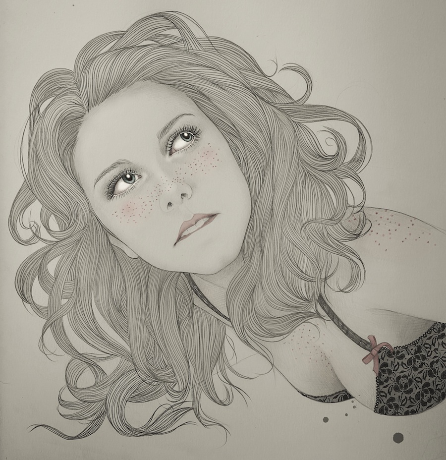 Sus ilustraciones plasman el lado más femenino y delicado de la mujer. Las miradas profundas de sus retratos, están llenas de historias que contar.